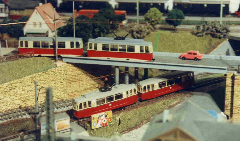 Nun war ich ja schon immer ein Fan der Tatra-Wagen. Allerdings stieß diese Vorliebe auf kein gutes Echo bei meinem Vater, denn diese Wagen waren einfach zu modern für diese Bahn. Außerdem hatten wir eine Stumpfendstelle, die für Einrichtungswagen nicht geeignet ist.