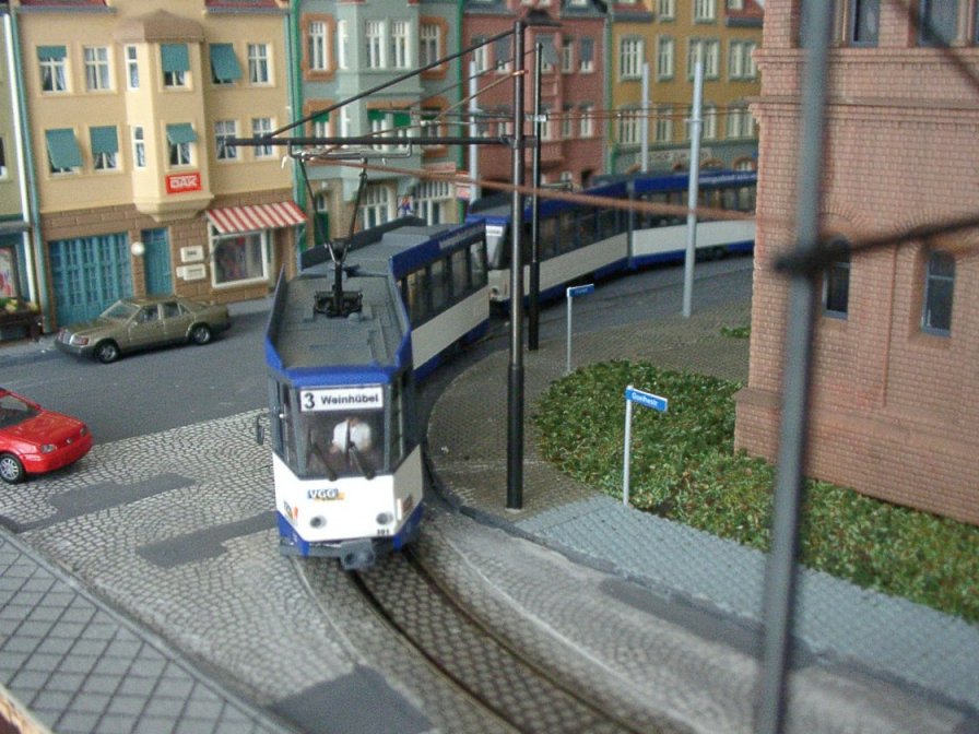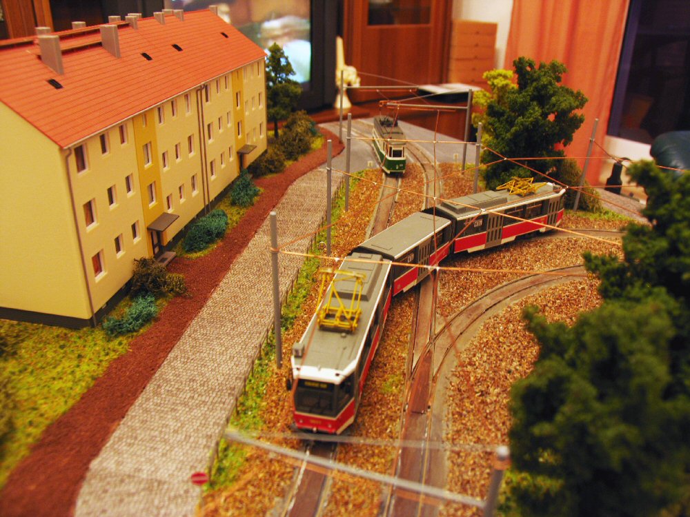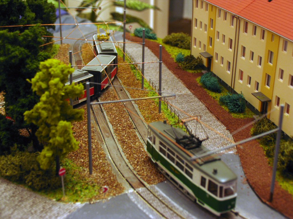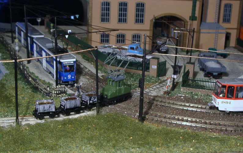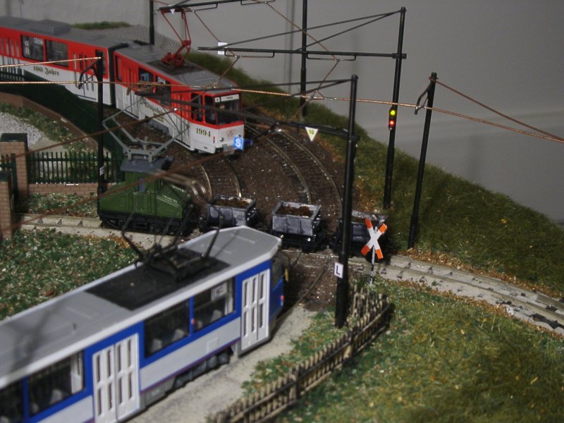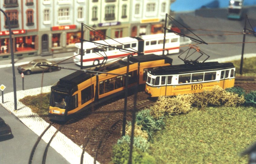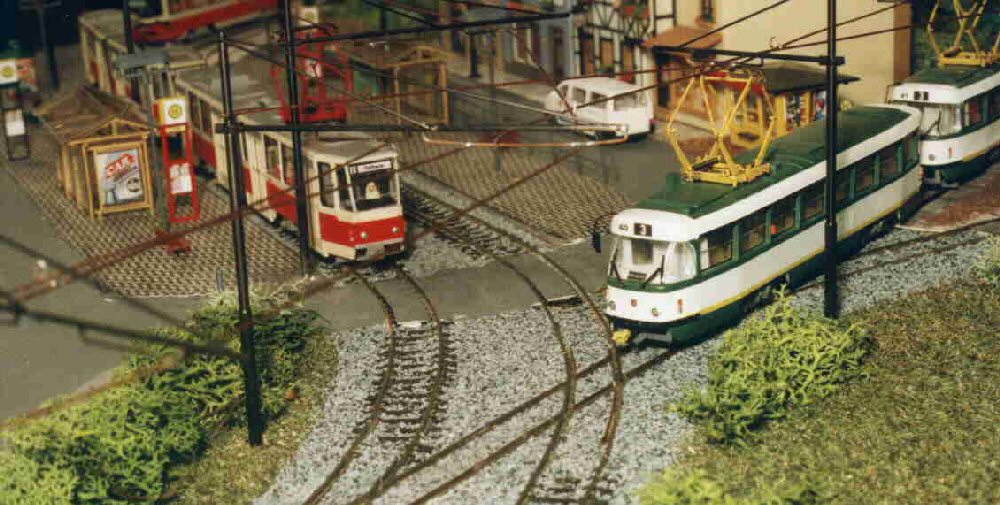 | Wenn die kleine Bahn quert, müssen die Straßenbahnen warten... | |