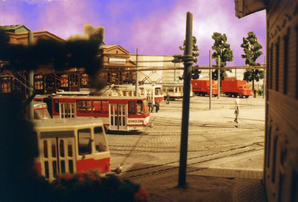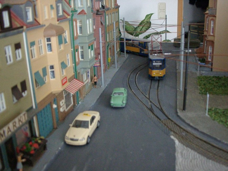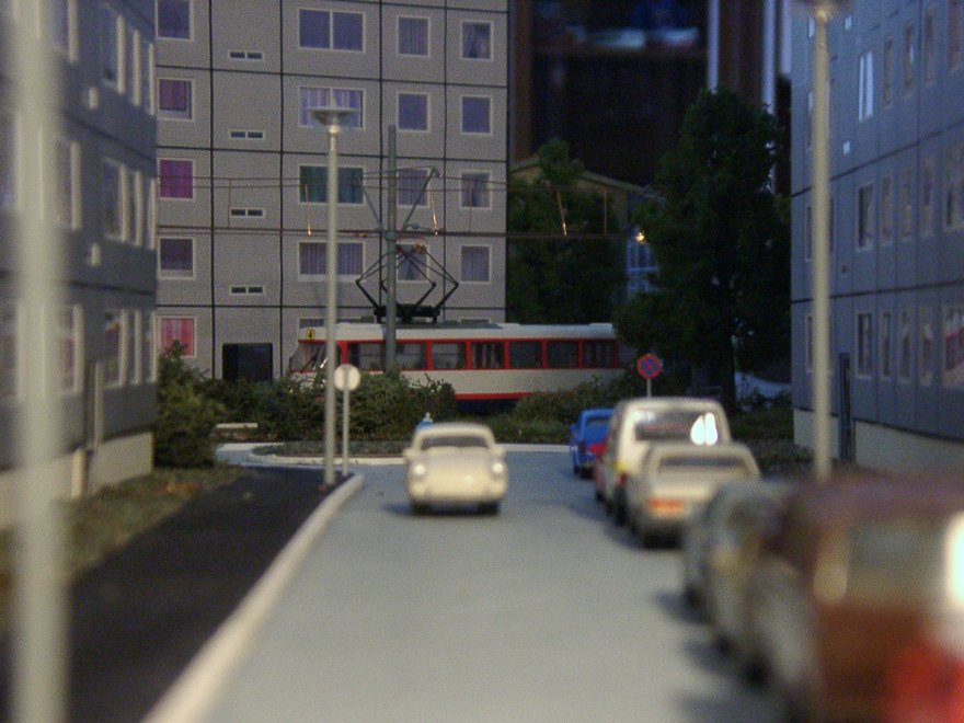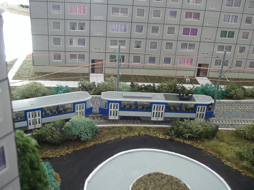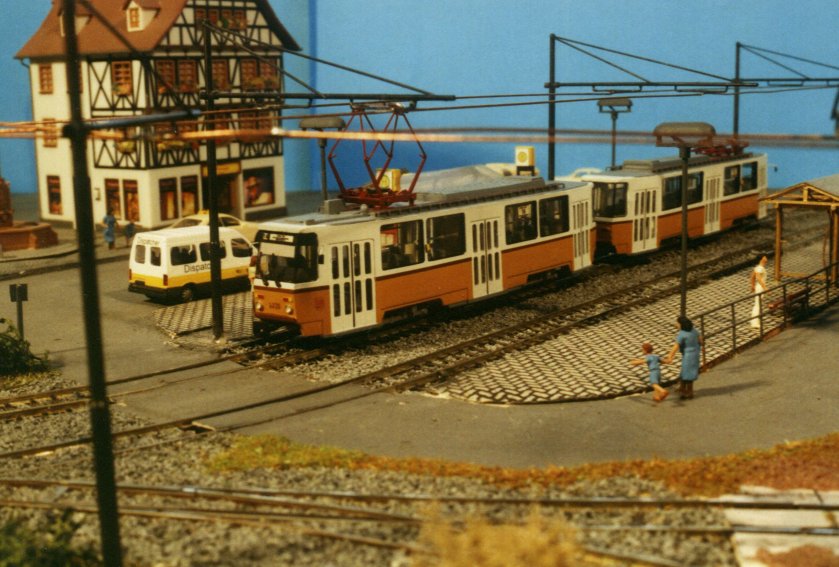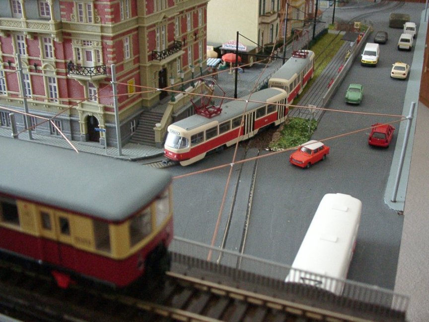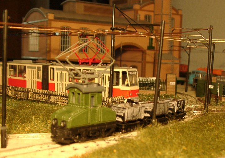 | Wenn die kleine Bahn quert, müssen die Straßenbahnen warten... | |