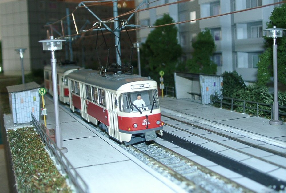 | In der Haltestelle steht ein Budapester T5C5-Zug (Eigenbau) | |