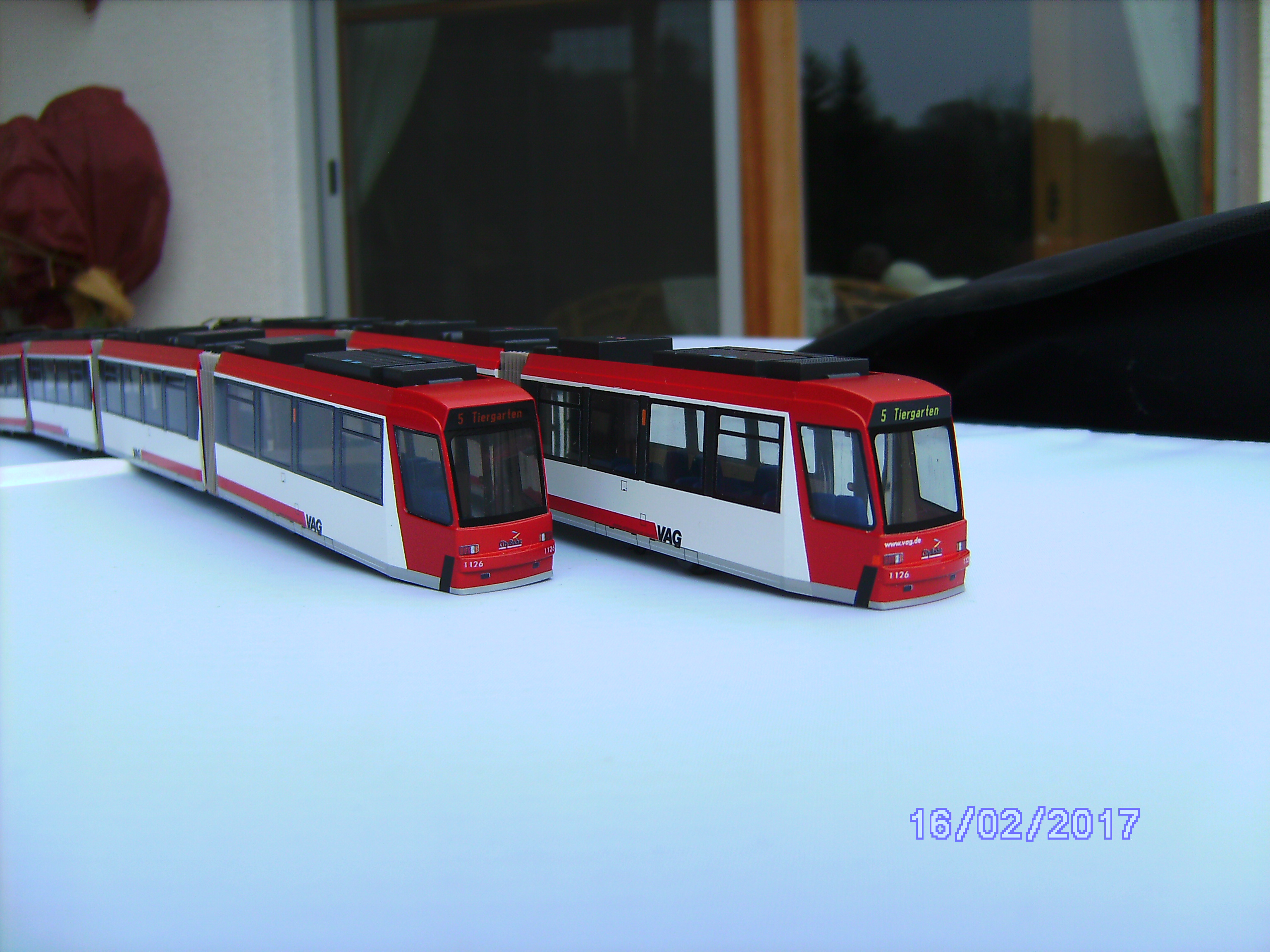 erstmal Lob an Herrn Hödl, daß er überhaupt sich nochmal der Sache Straßenbahn angenommen hat. Das es mit den GT6 nicht ganz geklappt hat, war einfach Pech, sprich die Ausarbeitung bei Rietze. Der GT8N ist echt schön geworden. Auf den Bildern erkennt man Vorserie und Serie gut. Und, daß der rote Streifen nun zu kurz ist, naja, es war eben in der HW der VAG mal nicht genügend rote Farbe oder Folie da. Das ist die Freiheit des "Künstlers". Ob die Wagen im Vorbild wirklich auf den cm gleich sind ? Die nächsten Modelle sind dann "richtig" und haben ja evtl. auch eine andere Wagennummer. Schon wieder ein Kaufmuss.....