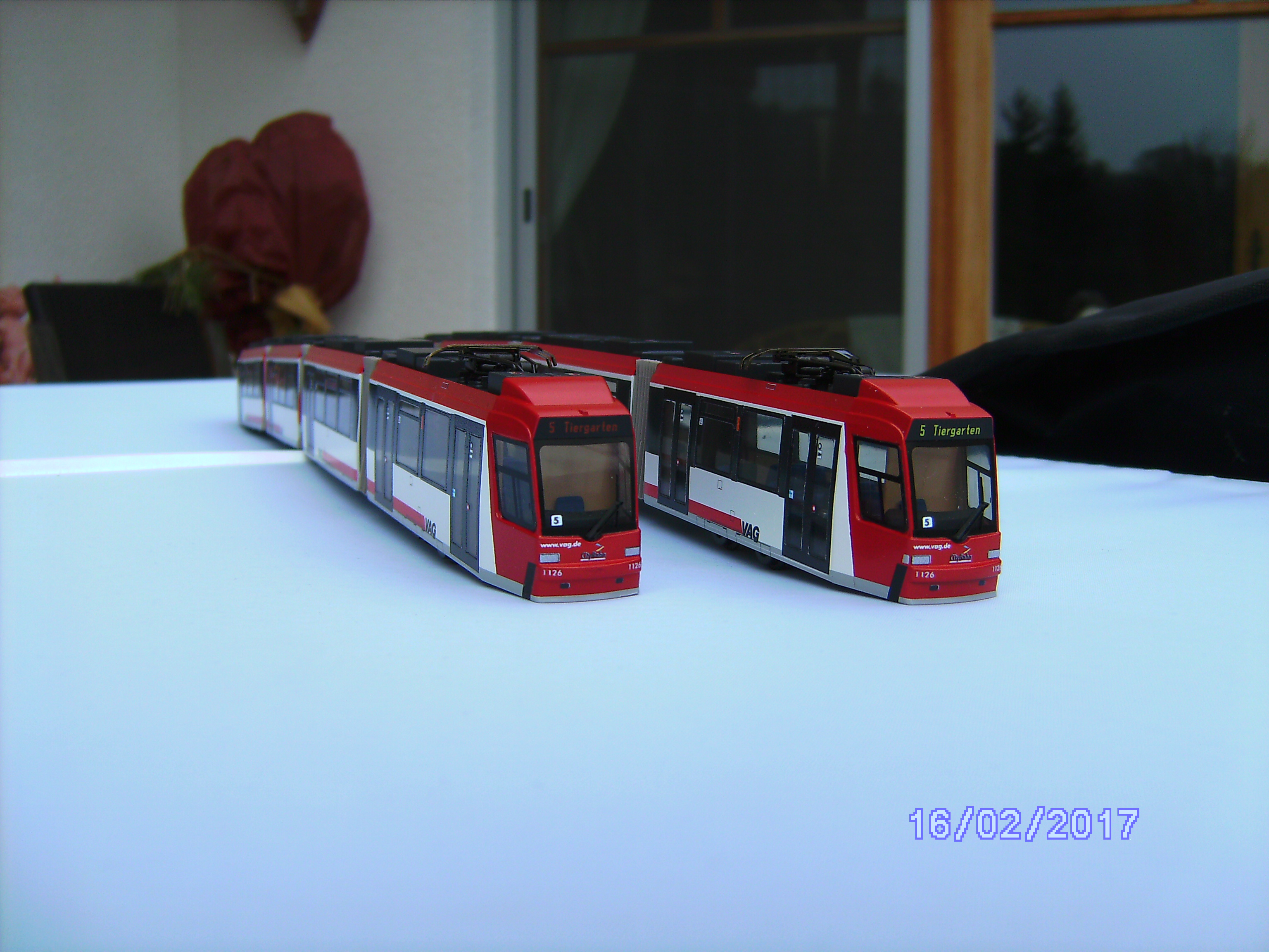 Zurück zu den aktuellen GTx. Bei deutlich günstigeren Verkaufspreisen wären die Fehldrucke doch eigentlich ein optimaler Einstieg in die Modelltramwelt für den Nachwuchs. Vorteil: mit entsprechenden Antriebsmodulen böte sich die Möglichkeit zumindest in H0 Nachwuchs auf die Modelltram zu bringen. Die aufgesteckten Gehäuse könnten später immernoch gegen solche mit richtigen Proportionen getauscht werden. Meinem Neffen würde ich so ein Modell entsprechend vorbereiten, wenn er wieder zu Besuch kommt. Das wäre dann "seine" Bahn, und ich müsste nicht meine "guten" Modelle herausrücken.
